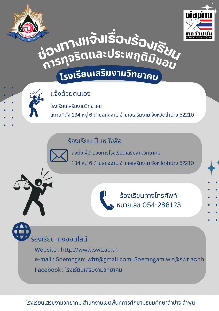 การแจ้งเรื่องร้องเรียนการทุจริตและประพฤติมิชอบ