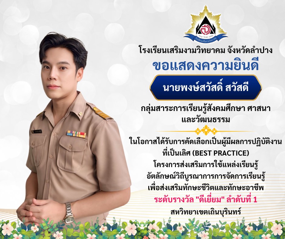 ขอแสดงความยินดีกับคณะครูที่มีผลการปฏิบัติงานที่เป็นเลิศ (BEST PRACTICE)
