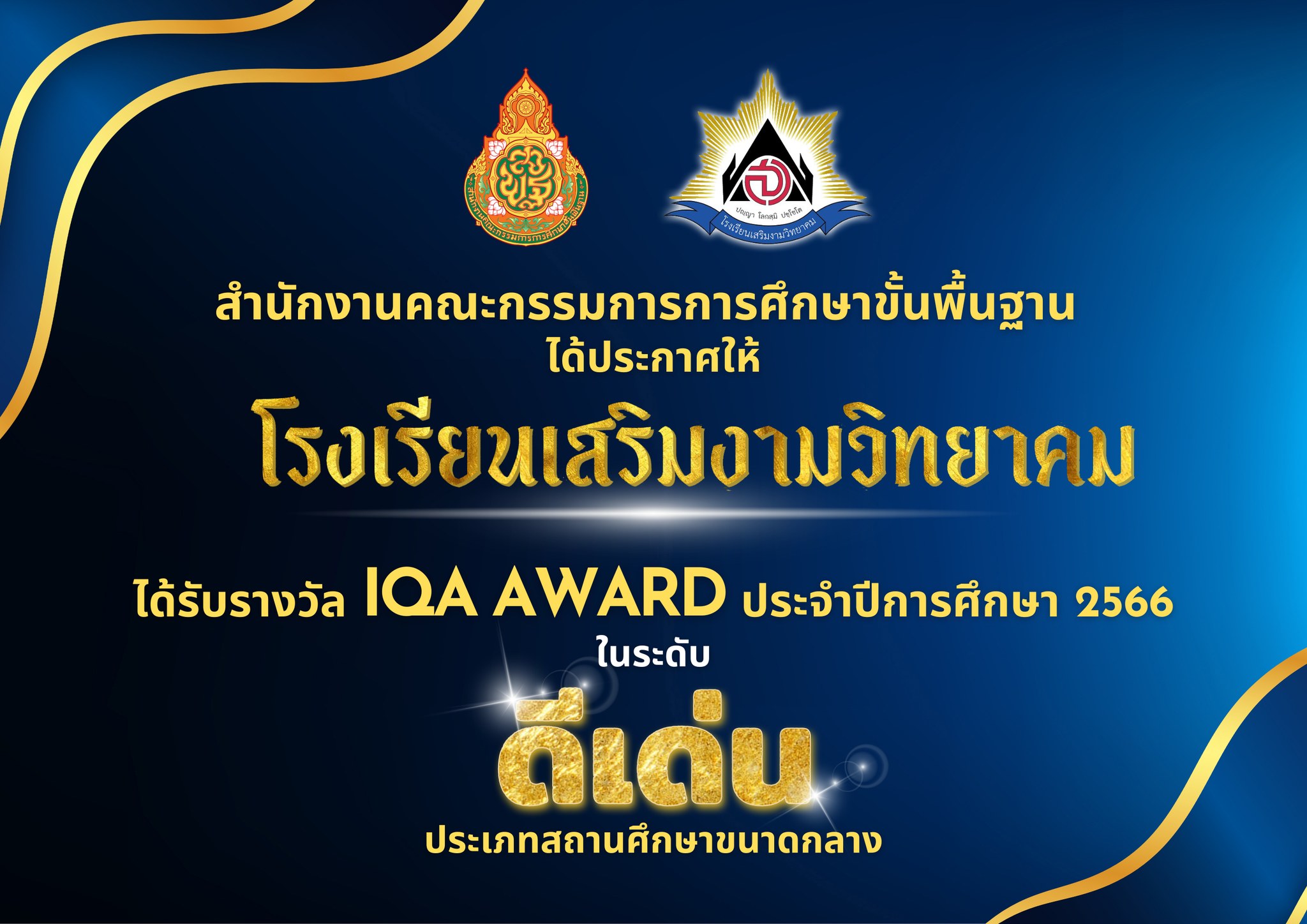 โรงเรียนเสริมงามวิทยาคม คว้ารางวัล IQA Award ระดับ "ดีเด่น" ประจำปีการศึกษา 2566