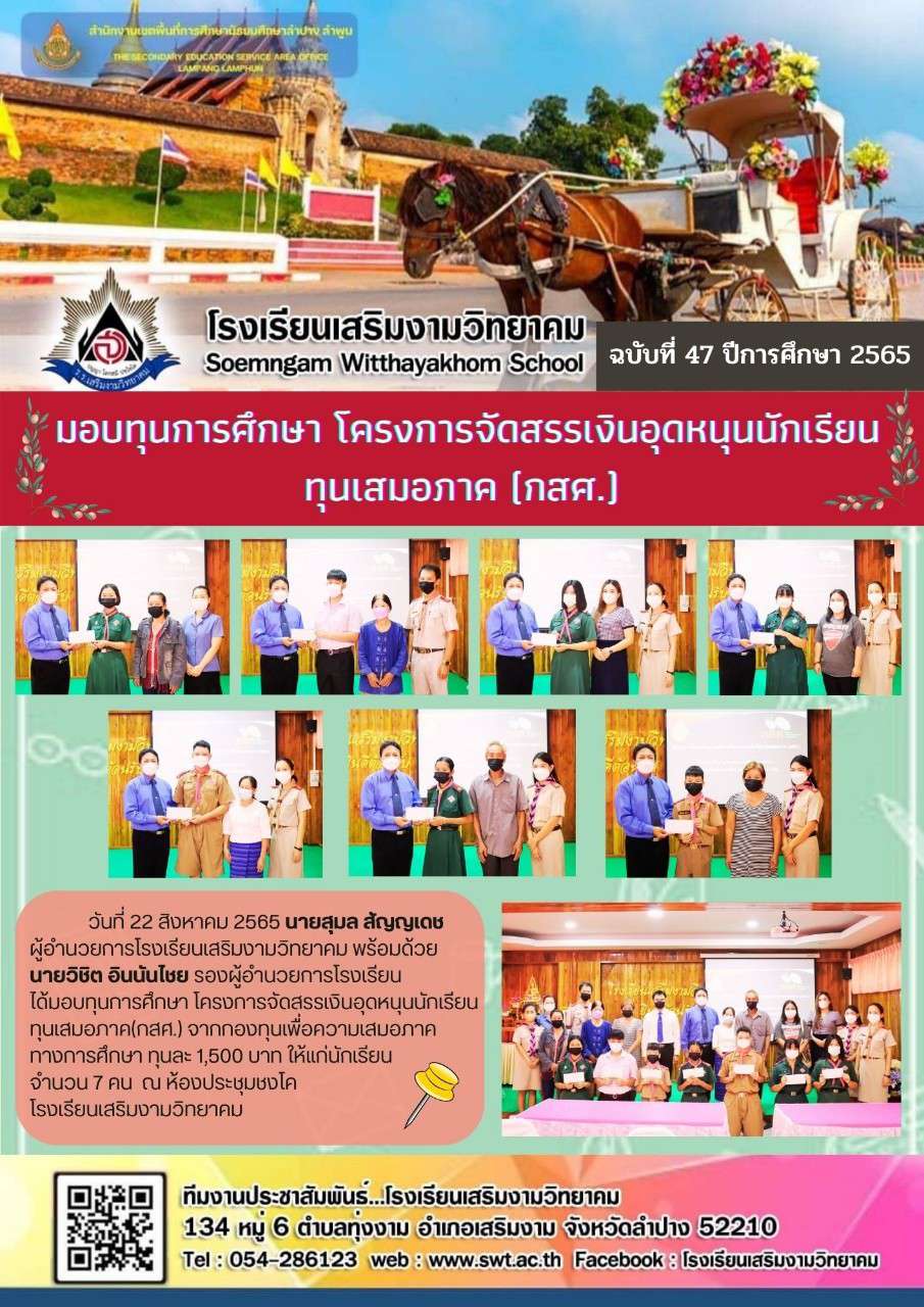 มอบทุนการศึกษา โครงการจัดสรรเงินทุนอุดหนุนนักเรียน ทุนเสมอภาค (กสศ.)