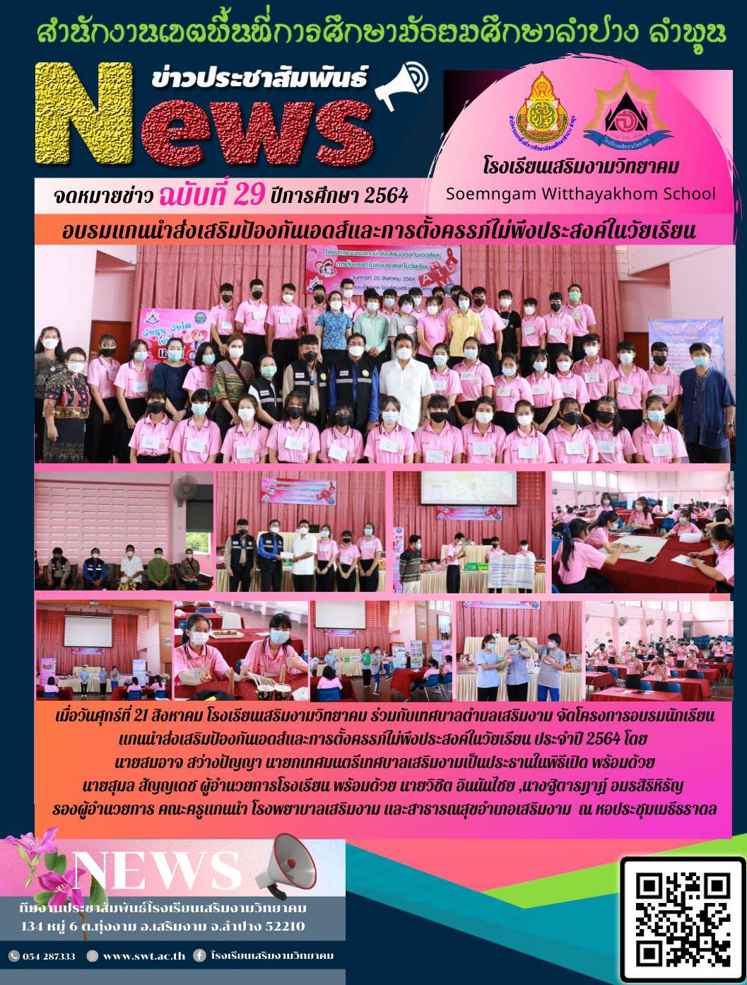 โรงเรียนเสริมงามวิทยาคม จัดอบรมแกนนำส่งเสริมป้องกันเอดส์และการตั้งครรภ์ไม่พึงประสงค์ในโรงเรียน
