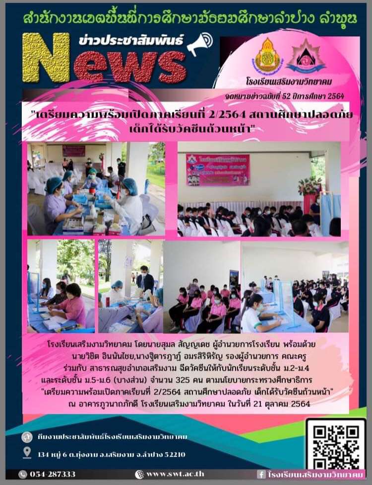 การฉีดวัคซีนเข็มที่ 1 ให้กับนักเรียนชั้น ม.2-ม.4 และ ม.5-ม.6 (บางส่วน)