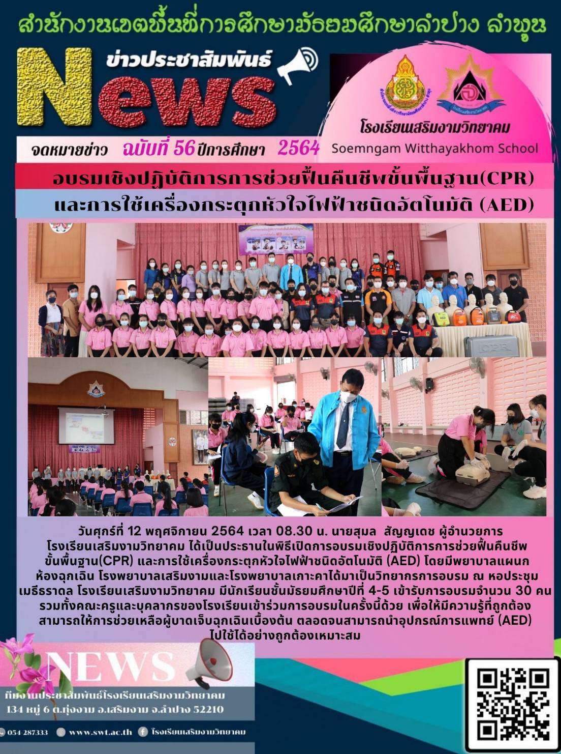 การอบรมเชิงปฏิบัติการการช่วยฟื้นคืนชีพขั้นพื้นฐาน (CPR) และการใช้เครื่องกระตุกหัวใจไฟฟ้าชนิดอัตโนมัติ (AED)