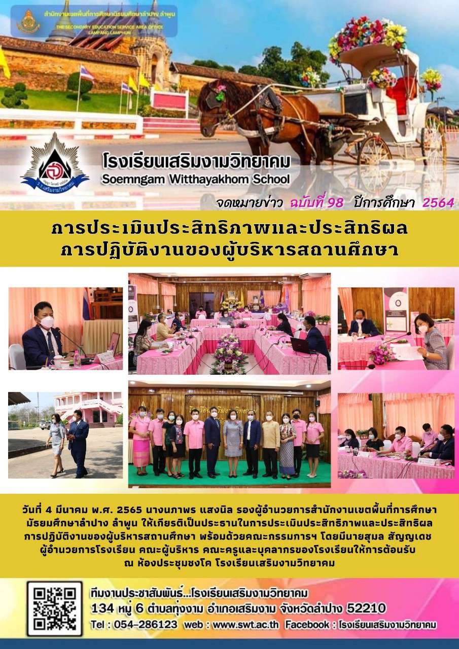 การประเมินประสิทธิภาพ ประสิทธิผล และการปฏิบัติงานของผู้บริหารสถานศึกษา